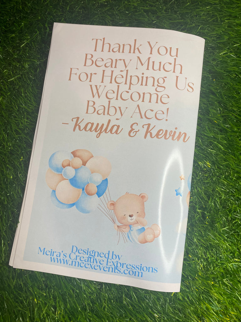Baby Shower Booklets include a back and front cover on glossy paper, and 8 inside pages which can include games and/or thank you messages. Please indicate which games you would like included and your theme. If you are needing more or less booklets, please send a text to 678-650-3937 and an updated invoice can be sent to you.