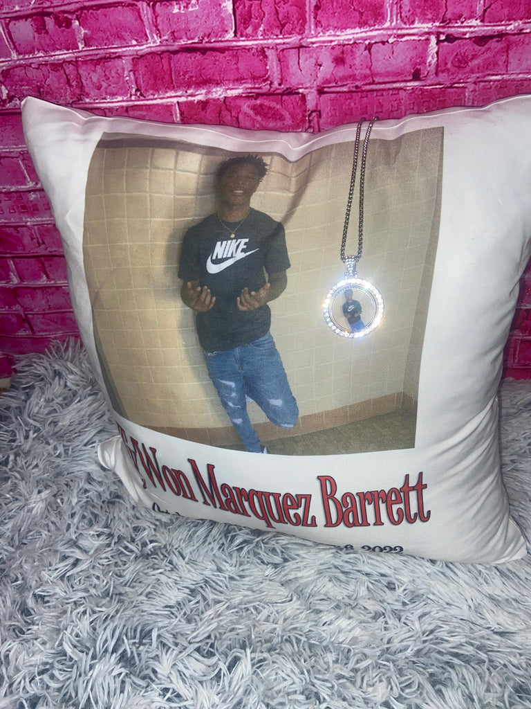 Please upload your photo and or wording for pillow. Pillows are ready for pickup/shipping within 72 business hours.